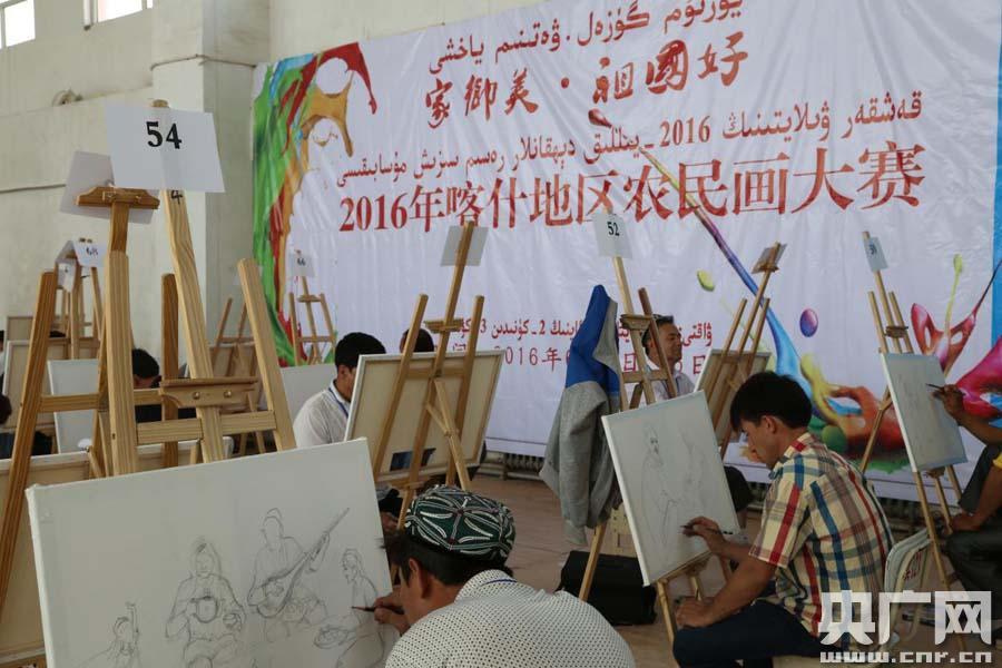 新疆喀什農(nóng)民畫大賽現(xiàn)場(央廣網(wǎng)記者 吳卓勝 攝)