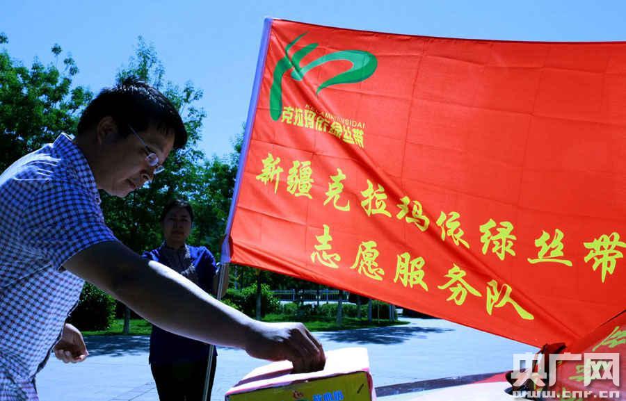 克拉瑪依綠絲帶成員獻(xiàn)愛心(周建玲 攝)