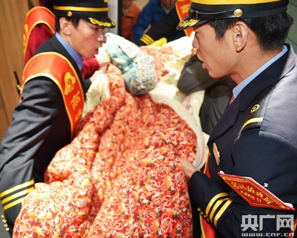 三分鐘后,列車順利關(guān)閉車門,站臺(tái)上的雷鋒班小伙們順著帽子向下流著汗。為了生命垂危的楊先生能夠順利搭上返鄉(xiāng)的列車,他們?nèi)σ愿啊?/p>
