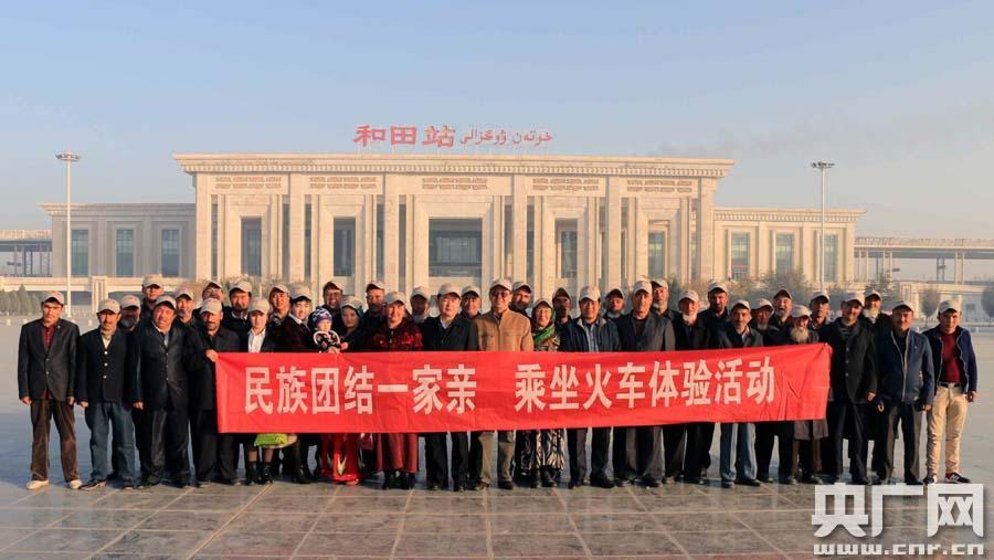 央廣網(wǎng)和田11月3日消息(記者張雷 通訊員李維)今天上午10點,被譽為“玉都第一窗口”的新疆和田火車站迎來了一群特殊的旅客:烏魯木齊鐵路局“訪惠聚”住村工作組組織拉依喀鄉(xiāng)達(dá)奎村42名村民代表乘坐5810次“民族團結(jié)大篷車”開展“民族團結(jié)一家親”乘坐火車體驗活動,感受被南疆地區(qū)各族群眾譽為“幸福路”的喀什至和田鐵路的今昔變化。