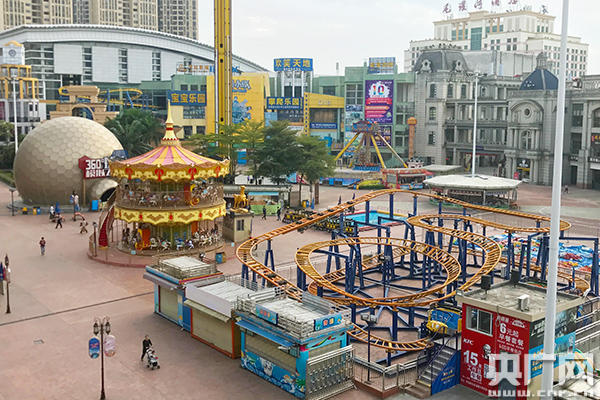 記者6日走訪了被摘牌的東莞新華南MALL歡笑世界(亦稱“歡笑天地”),該景區(qū)是在購物商場新華南MALL內(nèi)開設(shè)的一家大型游樂中心,分為室內(nèi)和室外兩部分場館。內(nèi)設(shè)有過山車、大擺錘、旋轉(zhuǎn)木馬和海盜船等十多款游樂設(shè)備,是目前東莞規(guī)模最大、項(xiàng)目最全的游樂中心,于2011年獲評為國家4A級旅游景區(qū)。