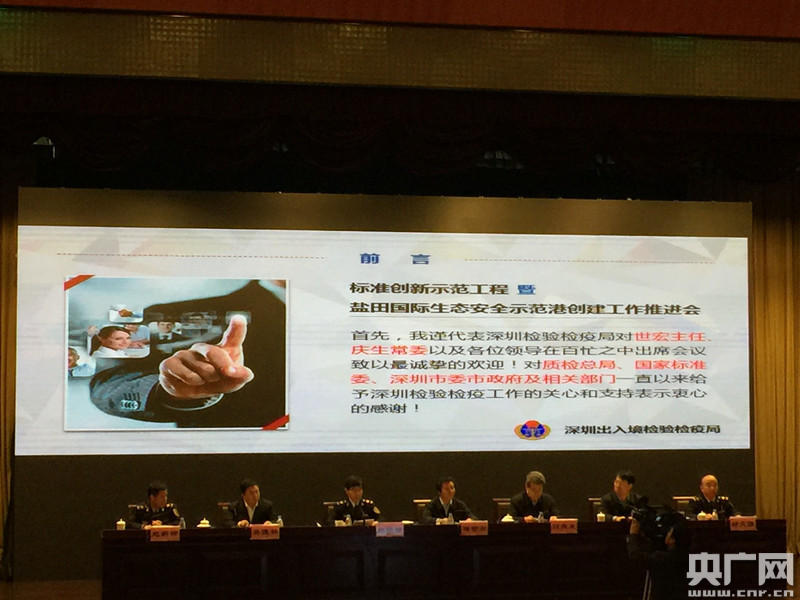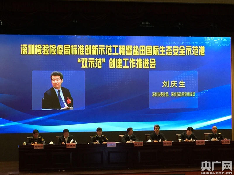央廣網(wǎng)深圳2月24日消息(記者李強(qiáng) 通訊員晏勝昔 蔣光君)今天上午,深圳檢驗(yàn)檢疫局召開(kāi)“標(biāo)準(zhǔn)創(chuàng)新示范工程暨鹽田國(guó)際生態(tài)安全示范港創(chuàng)建工作推進(jìn)會(huì)”,會(huì)議發(fā)布了檢驗(yàn)檢疫系統(tǒng)首批國(guó)家供港食品實(shí)驗(yàn)室檢測(cè)聯(lián)盟標(biāo)準(zhǔn)和深圳市首批檢疫處理服務(wù)企業(yè)標(biāo)準(zhǔn)。國(guó)家標(biāo)準(zhǔn)委主任田世宏、深圳市委常委劉慶生等領(lǐng)導(dǎo)出席會(huì)議。