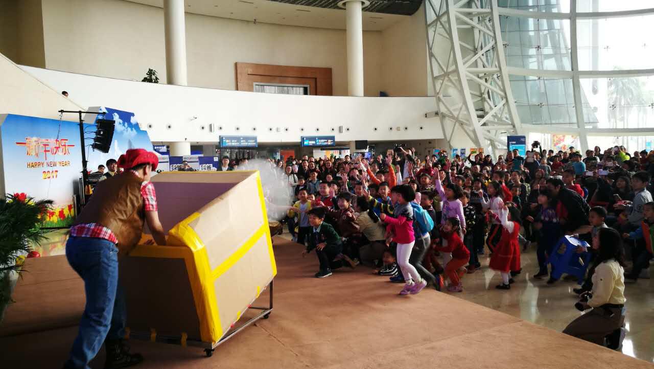 “索尼探夢(mèng)”科技館的經(jīng)典表演“大型室內(nèi)精品實(shí)驗(yàn)”匯集了“索尼探夢(mèng)”最受歡迎的科學(xué)實(shí)驗(yàn)。在現(xiàn)場(chǎng),“藍(lán)色飛行員”和“紅色牛仔”的趣味裝扮讓孩子們喜愛(ài)不已,他們將進(jìn)行一場(chǎng)“科學(xué)實(shí)驗(yàn)大比拼”,爭(zhēng)奪“科學(xué)冠軍”的稱號(hào)。他們用紙片就能做成神奇的“飛去來(lái)器”,能徒手讓沉甸甸的保齡球在空中“飄浮”,而“氦氣變聲”、“空氣炮”等精彩實(shí)驗(yàn)更引起了孩子們的陣陣掌聲。