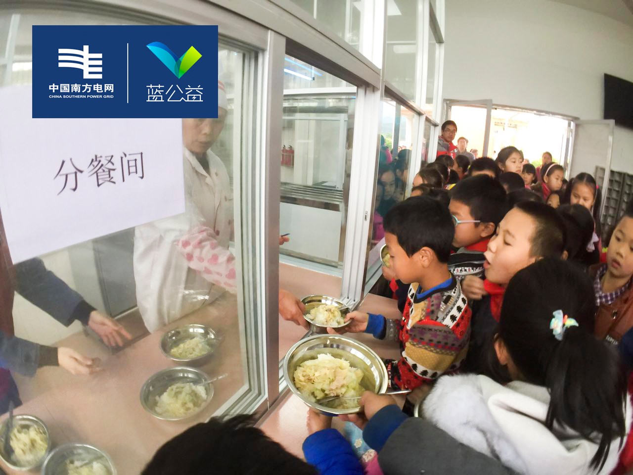 在清遠(yuǎn),像房天龍一樣在學(xué)校吃上了午飯的山區(qū)學(xué)生,超過(guò)了3300名,他們的飯?zhí)糜幸粋(gè)相同的名字:“南方電網(wǎng)—幸福廚房”。從2011年到現(xiàn)在,廣東電網(wǎng)清遠(yuǎn)供電局在清遠(yuǎn)市偏遠(yuǎn)山區(qū)共建立了20間“幸福廚房”,將營(yíng)養(yǎng)配餐和健康知識(shí)帶到了小朋友身邊。