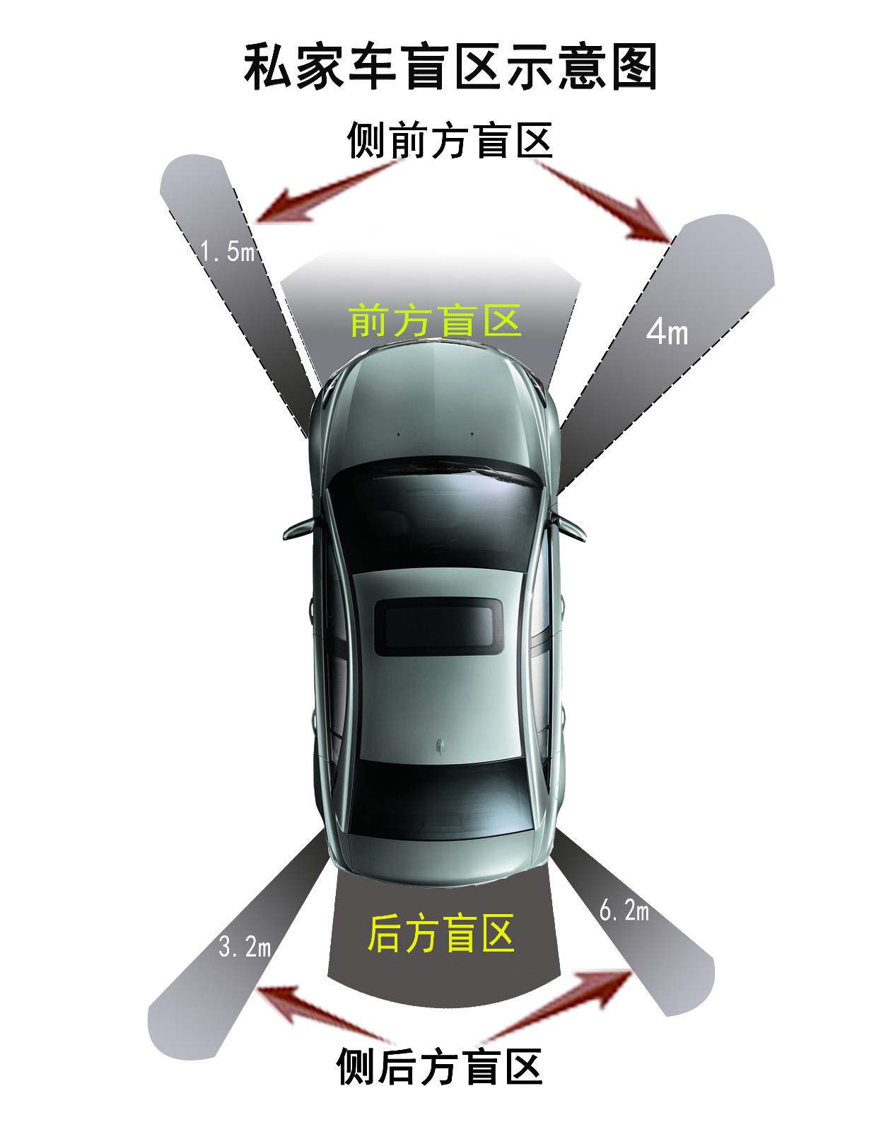 交運溫馨巴士除了總結(jié)公交車盲區(qū)外,還總結(jié)了私家車盲區(qū)和大貨車盲區(qū),希望能減少事故的發(fā)生。私家車較公交車相比,盲區(qū)范圍比較少,尤為突出的當屬行車時的盲區(qū)。