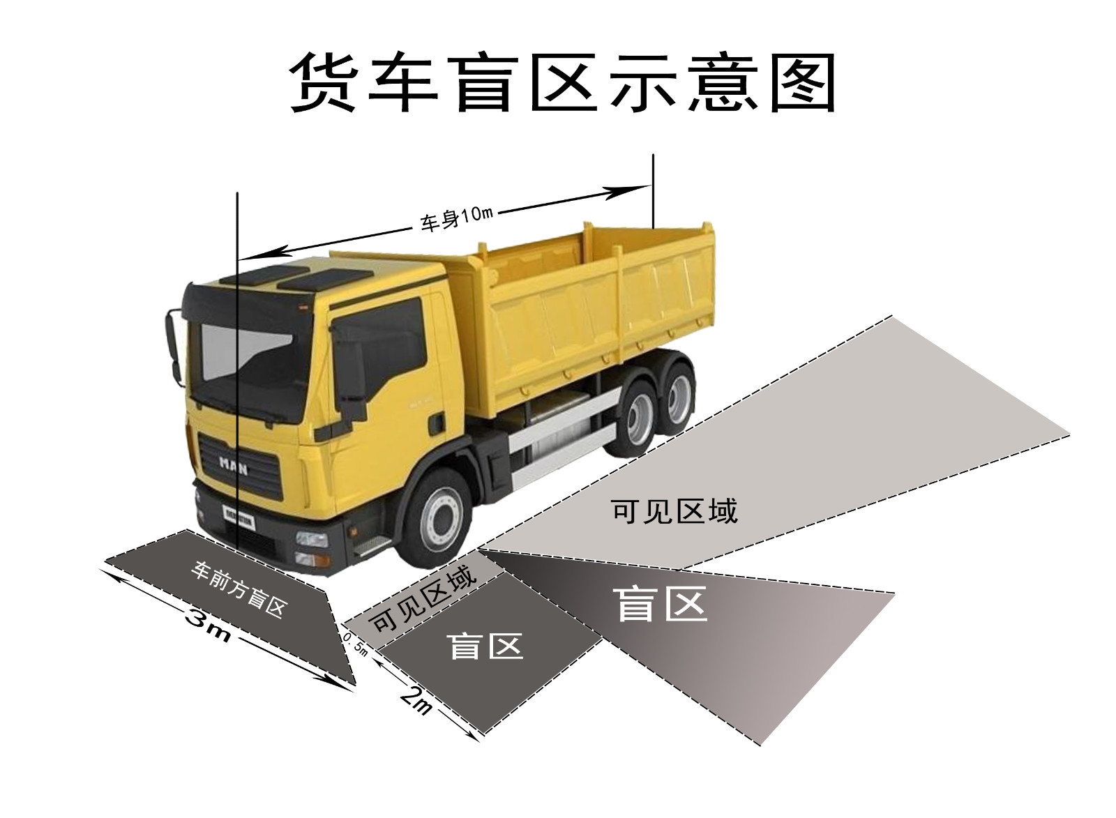 一、貨車前方盲區(qū)(2.5米范圍內(nèi)為盲區(qū))