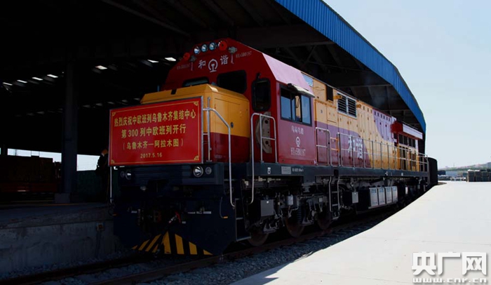 當(dāng)天,恰逢中歐班列烏魯木齊集結(jié)中心開行300列。12時(shí)10分,在汽笛長(zhǎng)鳴聲中,X9081次貨物列車從中歐班列烏魯木齊集結(jié)中心開出,駛向哈薩克斯坦阿拉木圖,這是中歐班列烏魯木齊集結(jié)中心自2016年5月投入運(yùn)營(yíng)后開行的第300趟西行班列,該趟班列的成功開行,為剛剛閉幕的“一帶一路”國(guó)際合作高峰論壇獻(xiàn)上了一份特殊的禮物。