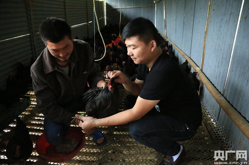 如何真正讓扶貧工作變“輸血”為“造血”?益陽市人大常委會副主任陳佑才和副市長李偉掛帥指導,多次實地考察調(diào)研。在扶貧工作隊的幫助下,村里結(jié)合實際,引進益陽天潤農(nóng)業(yè)發(fā)展有限公司,成立天潤關(guān)山養(yǎng)殖合作社。為了給彭拳卷一個寬松的創(chuàng)業(yè)環(huán)境,村里協(xié)助其流轉(zhuǎn)了200多畝山地,并給予政策上的幫扶!爸醒胍恢闭f要推進農(nóng)業(yè)供給側(cè)結(jié)構(gòu)性改革,我的理解就是改變供給!睂O瑞科說。就這樣,“關(guān)山土雞”應運而生。2016年3月,基地開始籌建選址,5月正式養(yǎng)殖。2017年3月,規(guī)模發(fā)展到2萬多羽只,產(chǎn)值達到80多萬元。