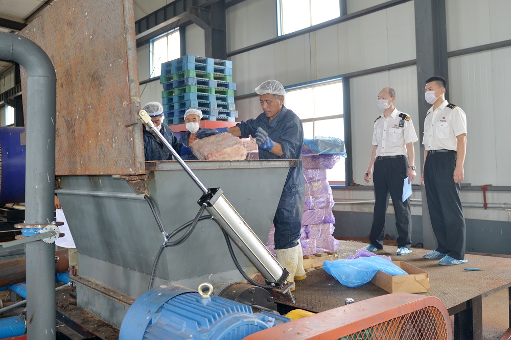 此次集中銷毀的走私凍品包括凍豬蹄、凍雞翅、凍牛肚和凍牛排等,是青島海關(guān)下屬煙臺海關(guān)查獲的繞關(guān)偷運(yùn)走私進(jìn)口涉案貨物。2016年10月,不法分子通過飼料魚運(yùn)輸船偷運(yùn)凍品走私入境,在靠港卸貨時被海關(guān)截獲。
