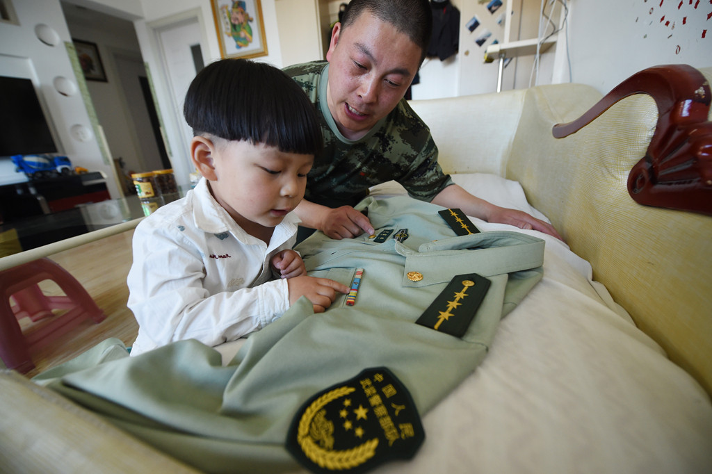 “以前聽說有的孩子看見穿軍裝的人都叫爸爸,感覺這句話特別假!焙⒆有〉臅r(shí)候,胡琳琳抱著兒子走在島上,兒子看見穿軍裝、迷彩服就叫“爸爸”,她才真切體會(huì)到那句話竟是真話:他的爸爸是一名軍人。