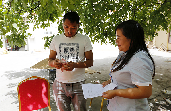 央廣網(wǎng)九寨溝8月11日消息(記者劉濤)“感謝信用社給予我們一如既往的支持,你們真正是我們老百姓自己的銀行!8月11 日下午13時(shí)35分,一身疲憊的九寨溝漳扎鄉(xiāng)三組村民龍?jiān)葡鑴倧男庞蒙鐔T工手中接過(guò)現(xiàn)金,不停的說(shuō)著感謝的話語(yǔ)。