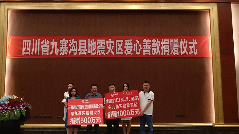 央廣網(wǎng)成都8月16日消息(記者劉濤)今天(16日),成都會展旅游集團(tuán)鄧鴻、趙凱董事以及云南省城市建設(shè)投資集團(tuán)有限公司分別向8.8九寨溝地震災(zāi)區(qū)捐贈1000萬元和500萬元。