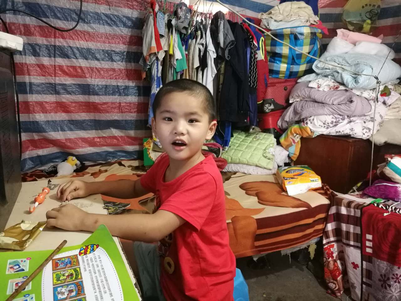 劉小羽穿著紅色的短袖T恤,圓圓的腦袋大大的臉,笑呵呵的在床上翻滾。問他叫什么名字,“劉小羽嘛……”他故意拖長(zhǎng)了音,仿佛在說:你不是知道我名字嗎,為什么還問。