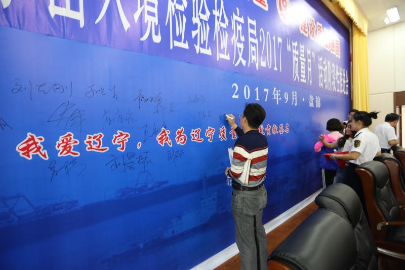 央廣網(wǎng)盤錦9月18日消息(記者張四清 通訊員張柏棋)以“大力提升質(zhì)量 建設(shè)質(zhì)量強(qiáng)題國”為主題的遼寧出入境檢驗檢疫局2017年“質(zhì)量月”活動階段推進(jìn)會”今天在盤錦市舉行,五十余家企業(yè)與有關(guān)部門共同簽署“我愛遼寧 我為遼寧質(zhì)量提升做貢獻(xiàn)”的承諾,引導(dǎo)廣大企業(yè)共同提升質(zhì)量。