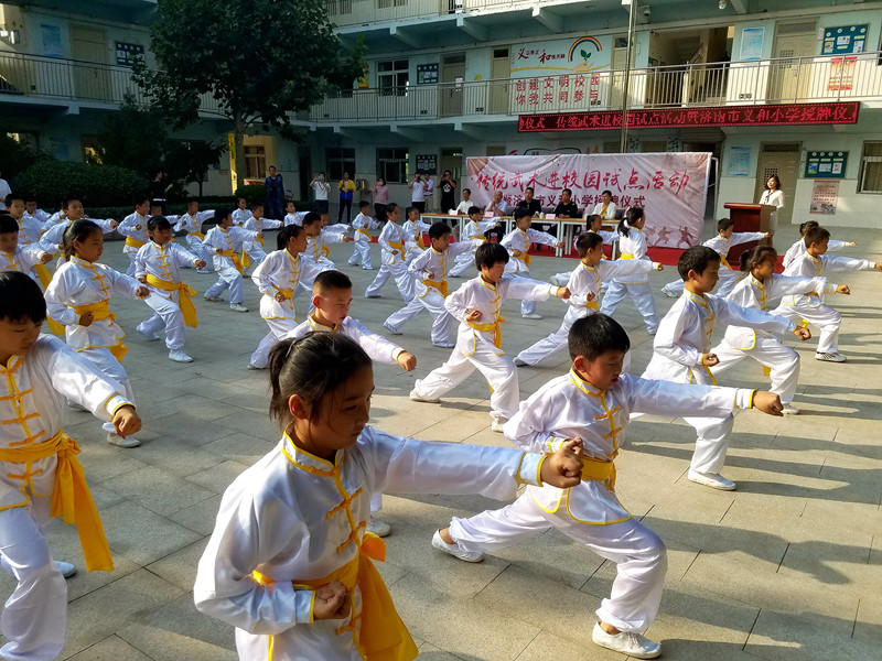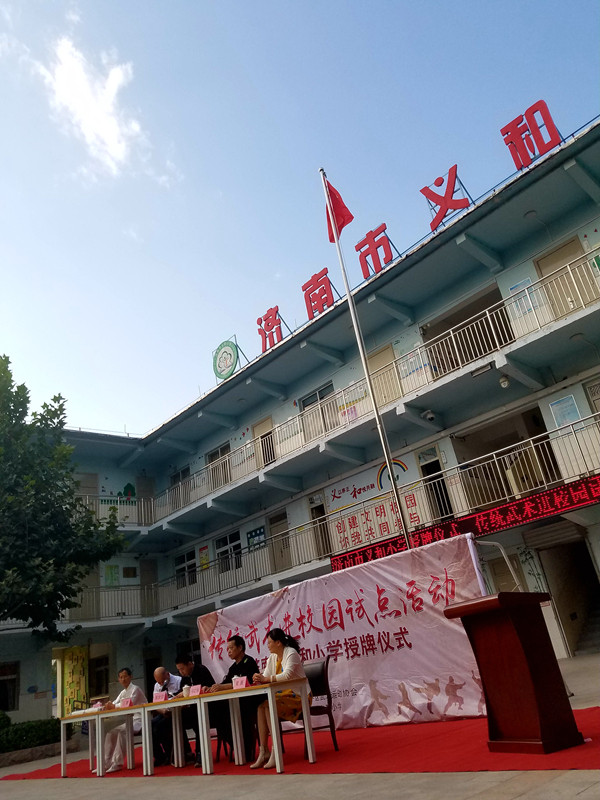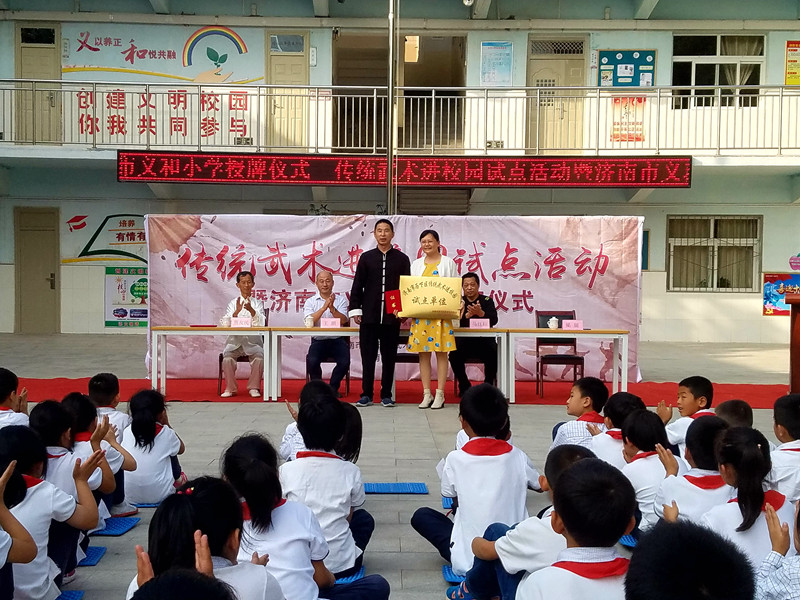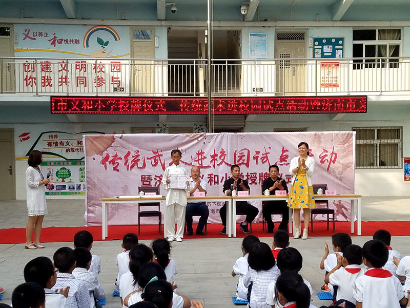 當日,傳統(tǒng)武術進校園試點活動暨濟南市義和小學授牌儀式舉行。