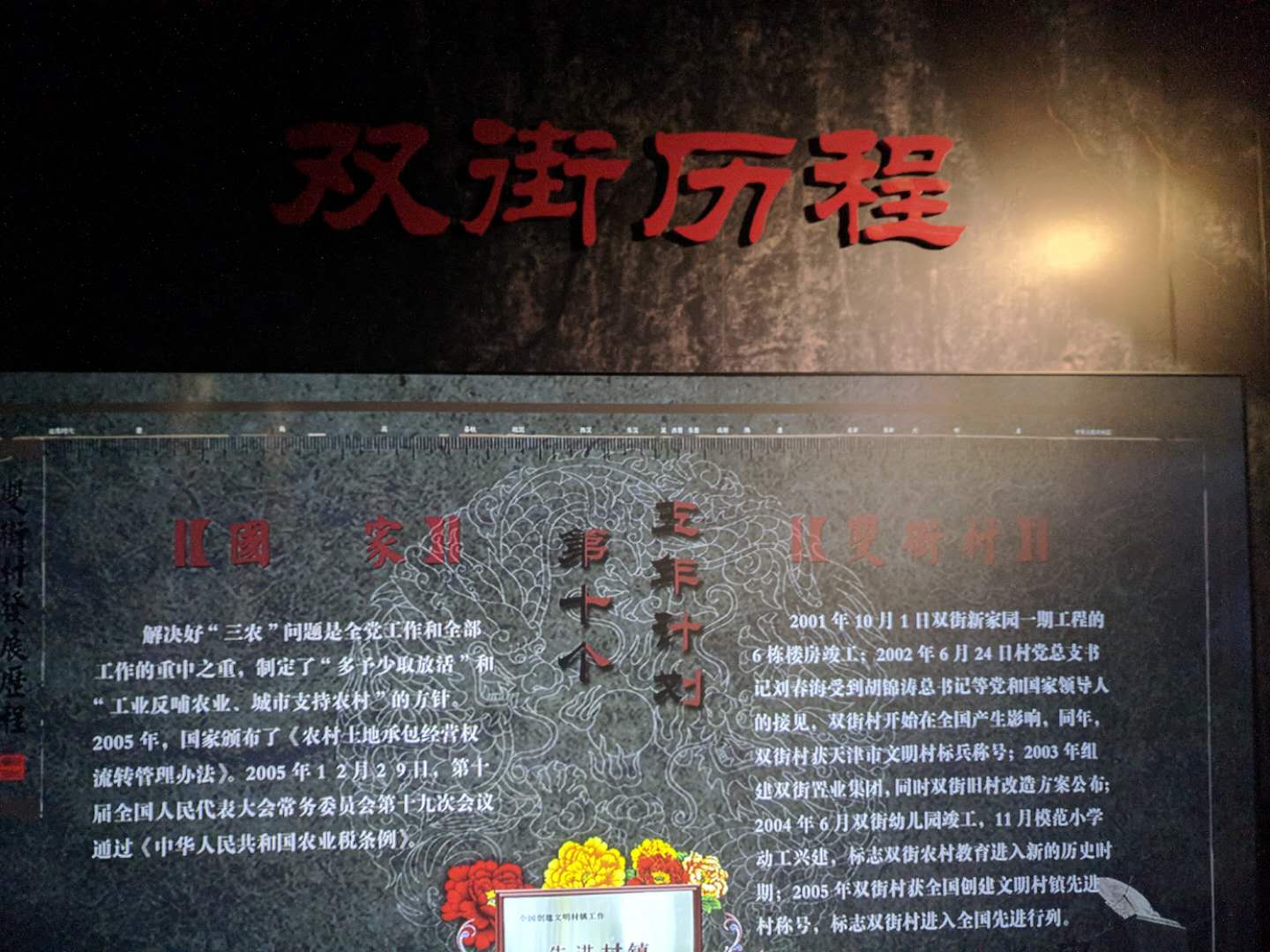 北辰雙街村位于北運(yùn)河畔,是小城鎮(zhèn)建設(shè)和旅游觀光農(nóng)業(yè)結(jié)合的優(yōu)秀典范。雙街村文化歷史展覽館則是北辰區(qū)首個(gè)村級(jí)文化歷史展覽館,于2015年建成對(duì)外開(kāi)放,總面積200多平米,主要建筑以過(guò)去農(nóng)村一宅一院的風(fēng)格建造而成,分為庭院春秋、昔日雙街、今日雙街和印象雙街四個(gè)功能區(qū),分別通過(guò)投影、電子觸摸屏、文字、圖片、實(shí)物等形式展示了雙街村自明朝建村以來(lái)600年的歷史變遷。