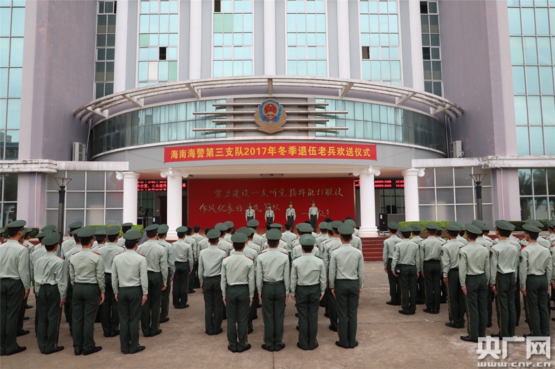 央廣網(wǎng)?12月1日消息(記者朱永 通訊員 李琳 張波 攝影 張波)送戰(zhàn)友,踏征程,又到一年退伍時(shí)。12月1日,海南海警第三支隊(duì)隆重舉行2017年度歡送冬季退伍老兵儀式,退伍老兵告別了曾經(jīng)戰(zhàn)斗過的火熱警營,踏上了新的人生旅程。