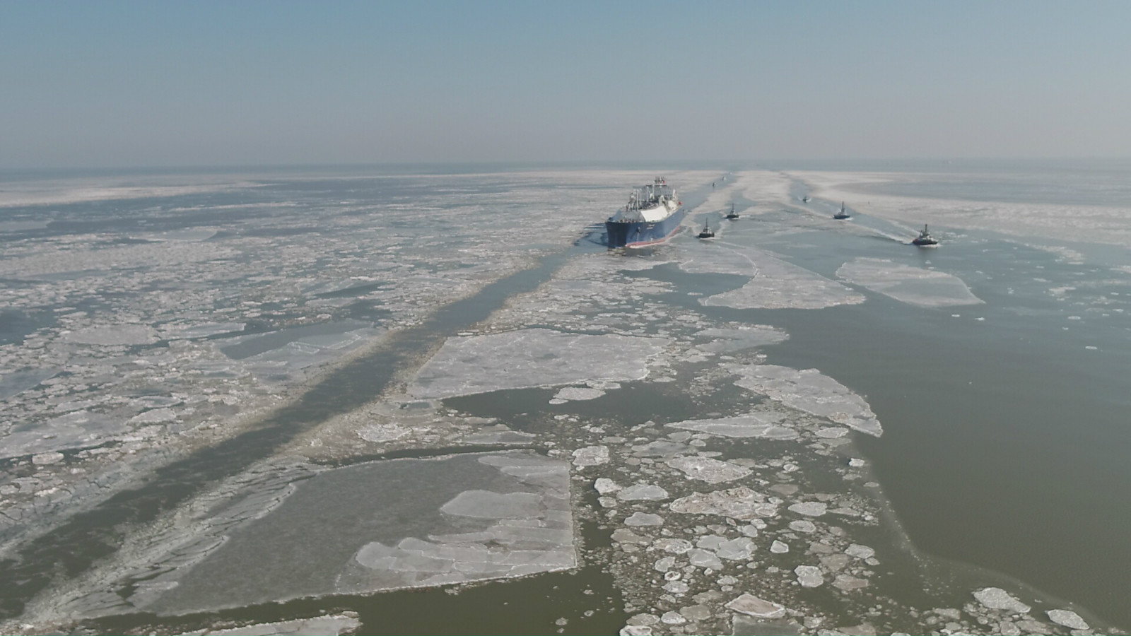 在天津海事船艇的護送下,載運LNG(液化天然氣)的“中能北!陛喗裉煜挛纾2月6日)安全靠妥大港港區(qū)中石化天津LNG碼頭。這也是天津港大港港區(qū)通航后迎來的首艘LNG船舶。