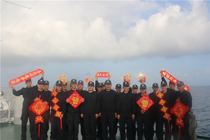金雞才報舊年豐,瑞犬又道新春旺。每逢佳節(jié)倍思親,在祖國西沙海域執(zhí)勤的海南海警官兵們?nèi)匀粓允卦诤=痪,為維護(hù)祖國的海洋權(quán)益,忠實地履行著自己的使命職責(zé),舍小家顧大家,巡邏執(zhí)勤在祖國的海防一線,用實際行動守好祖國南大門。值此新春佳節(jié)之際,駐祖國最南端的海警官兵們向全國人民拜年:海警46101艦全體官兵祝全國人民新年快樂,祝祖國繁榮富強(qiáng)!