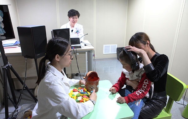 4月16日晚8點,小心毅抵達北京兒童醫(yī)院。當晚,倪鑫院長、王天有書記立即安排展開多學科會診,制定治療方案。針對家屬主訴患兒聽力障礙問題,首先為小心毅在聽力中心進行了聲反射和行為聽力評估,初步評估提示患兒聽力在基本正常范圍內(nèi)。因檢查過程中發(fā)現(xiàn)患兒理解能力、配合能力都較差,醫(yī)院決定次日安排患兒進行全面檢查。