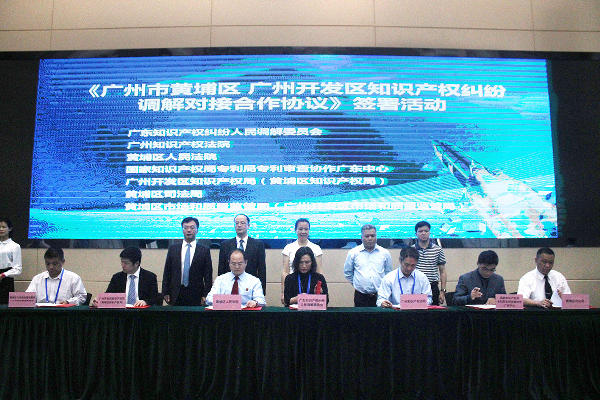 此外,審協(xié)廣東中心、廣東知識(shí)產(chǎn)權(quán)糾紛人民調(diào)解委員會(huì)、廣州知識(shí)產(chǎn)權(quán)法院、黃埔區(qū)人民法院、黃埔區(qū)司法局、廣州開發(fā)區(qū)市場和質(zhì)量監(jiān)管局、廣州開發(fā)區(qū)知識(shí)產(chǎn)權(quán)局共同簽署《廣州市黃埔區(qū)廣州開發(fā)區(qū)知識(shí)產(chǎn)權(quán)糾紛調(diào)解對接合作協(xié)議》。