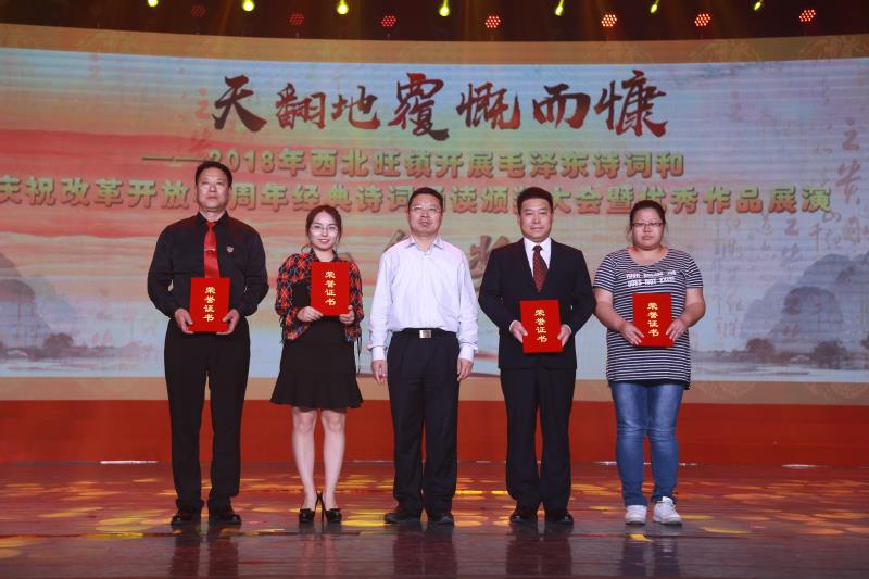 央廣網(wǎng)北京4月28日消息(記者劉天思、通訊員馬鳳霞)4月27日,由北京市海淀區(qū)文化委員會(huì)與西北旺鎮(zhèn)政府主辦的“書香海岳新時(shí)代文化揚(yáng)帆中關(guān)村”“天翻地覆慨而慷”2018年西北旺鎮(zhèn)開展毛澤東詩詞和慶祝改革開放40周年經(jīng)典詩詞誦讀頒獎(jiǎng)大會(huì)暨優(yōu)秀作品展演在航天城禮堂舉行。著名朗誦表演藝術(shù)家曹燦及西北旺鎮(zhèn)各村、社區(qū)朗誦愛好者1200余人一同觀看了演出。