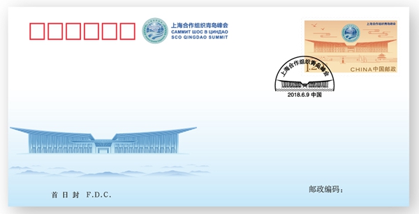 上海合作組織成員國元首理事會第十八次會議將于2018年6月9日至10日在山東省青島市舉行,中國郵政特發(fā)行《上海合作組織青島峰會》紀念郵票1套1枚。郵票以上海合作組織會徽及主場館——青島國際會議中心線描圖為主要元素,以祥云、海鷗為裝飾;畫面下方仍以線描手法,表現(xiàn)海上棧橋、帆船、燈塔、輪船等景物,展現(xiàn)了會議舉辦地——黃海明珠青島的特色。整體設計簡潔明快,主題突出。