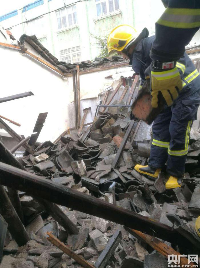 因突遭雷暴天氣,今天中午13時(shí)30分左右,寧波市鎮(zhèn)海區(qū)蛟川街道虹橋老村后一間房屋突發(fā)倒塌,造成一名老人被埋。接警后趕到現(xiàn)場(chǎng)的消防隊(duì)員隨后徒手將該老人從廢墟中救出,并火速送往醫(yī)院救治。