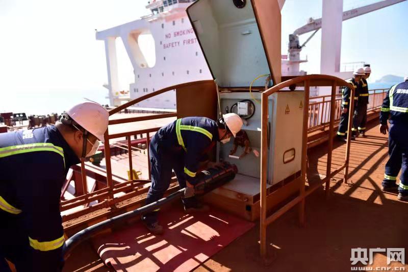 大連港首次成功為40萬噸礦石船連接岸電(央廣網發(fā) 趙光輝 攝)