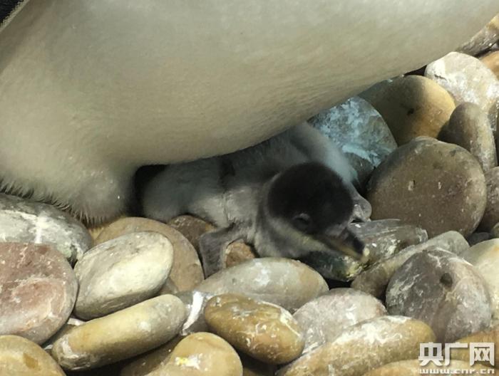 新生小企鵝在媽媽?xiě)牙铮ㄑ霃V網(wǎng)發(fā) 周丹 攝)