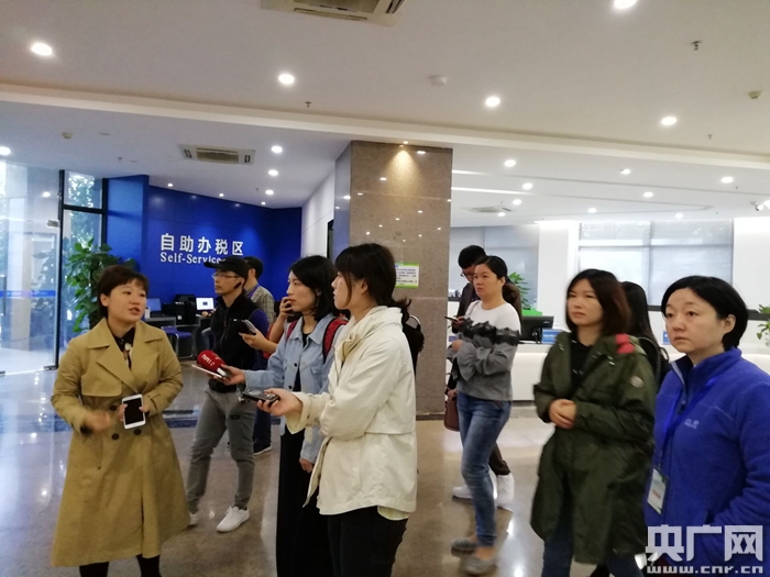 記者們?cè)趫@區(qū)內(nèi)的政務(wù)大廳采訪(央廣網(wǎng)發(fā) 海南臺(tái)陳海波 攝)