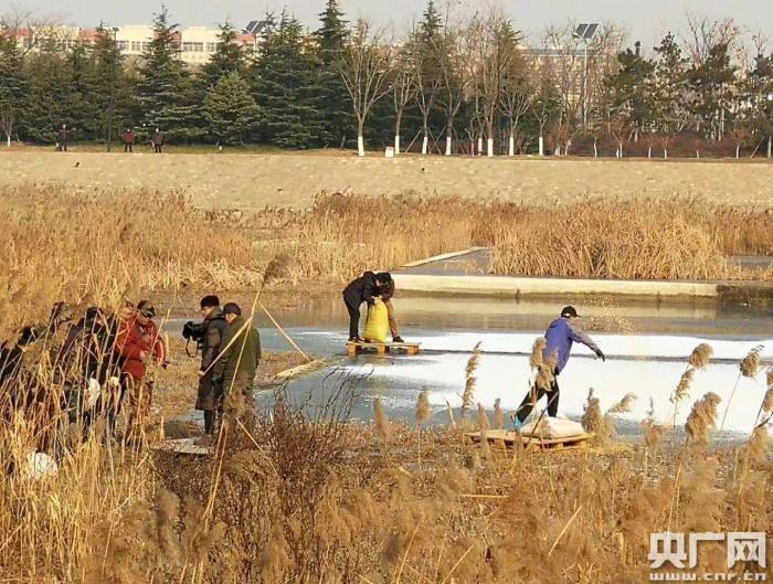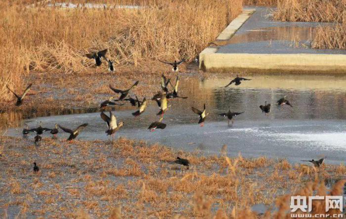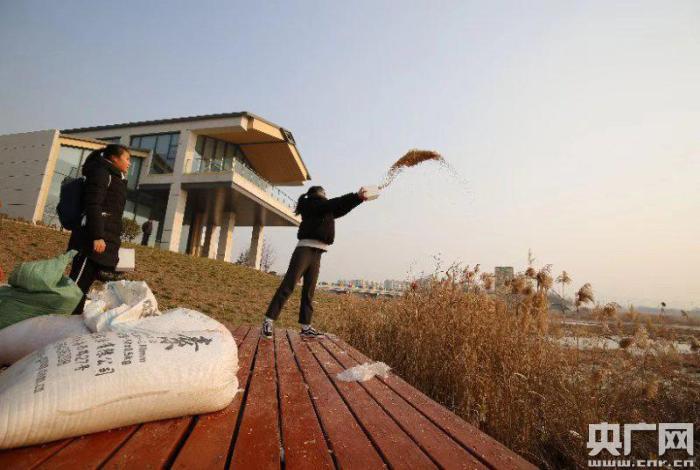 環(huán)保志愿者眾籌買糧為濕地候鳥投食越冬(央廣記者 王偉 攝)