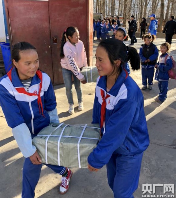 志愿者給學(xué)生們發(fā)放捐贈(zèng)圖書 (央廣網(wǎng)實(shí)習(xí)記者池月婷 攝)