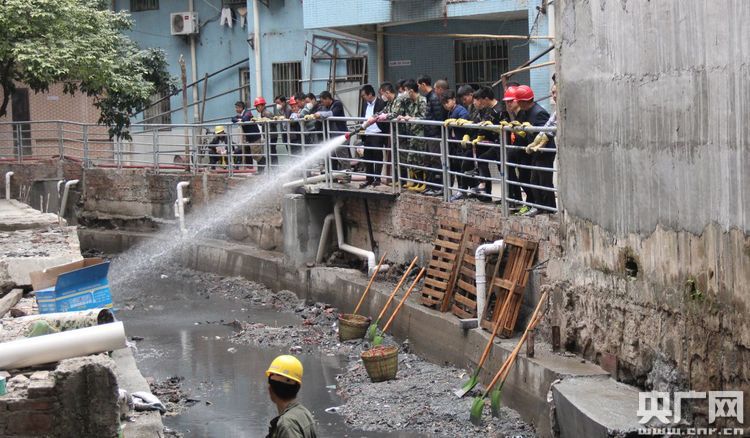 據(jù)悉,本次“洗河”包括沖刷清洗、清理垃圾、疏通河道、修復(fù)兩岸等措施,現(xiàn)場出動(dòng)了大型吸污車2臺(tái),抽走河床淤泥;出動(dòng)鉤機(jī)1臺(tái)和強(qiáng)力泵2臺(tái),挖通河道,清排污水,實(shí)施“干涌洗河”;出動(dòng)消防車2臺(tái),沖刷河道兩側(cè);出動(dòng)垃圾運(yùn)輸車3臺(tái),清運(yùn)垃圾雜物等。