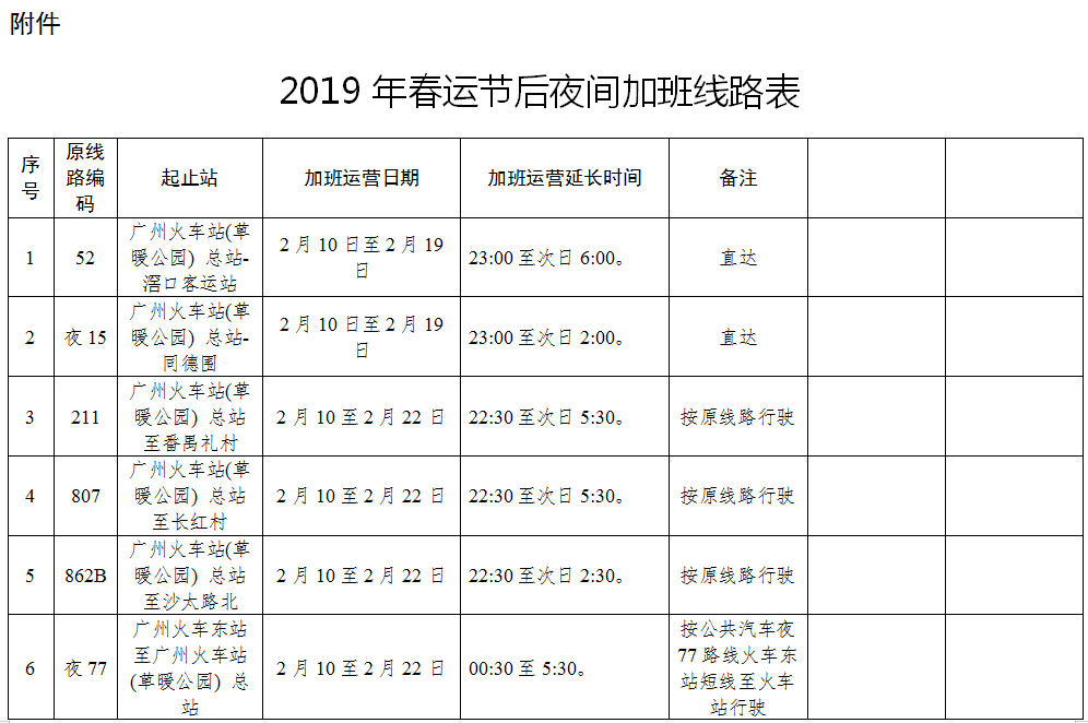 附件:2019年春運節(jié)后夜間加班線路表