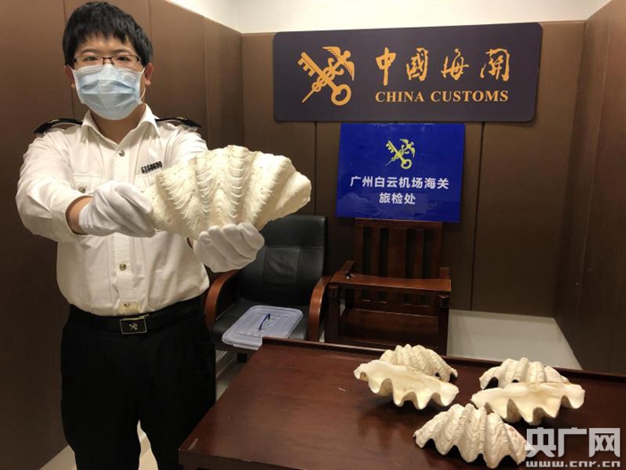 據(jù)了解,廣州海關(guān)隸屬白云機(jī)場海關(guān)現(xiàn)場關(guān)員在對一班由馬尼拉飛抵廣州的進(jìn)境航班進(jìn)行監(jiān)管時(shí),發(fā)現(xiàn)1名旅客行李機(jī)檢圖像異常,開箱檢查發(fā)現(xiàn)7件類似“貝殼”的物品,疑似瀕危野生動(dòng)物硨磲。數(shù)日后,現(xiàn)場關(guān)員又在沙巴飛抵廣州的進(jìn)境航班中,查獲1名女性旅客違規(guī)攜帶疑似硨磲,2宗案件合計(jì)查獲硨磲8件、重約15千克。相關(guān)人員均稱為旅游期間購買的紀(jì)念品,目前相關(guān)案件已移交緝私部門處理。