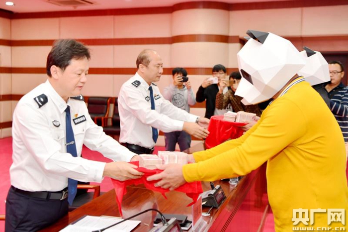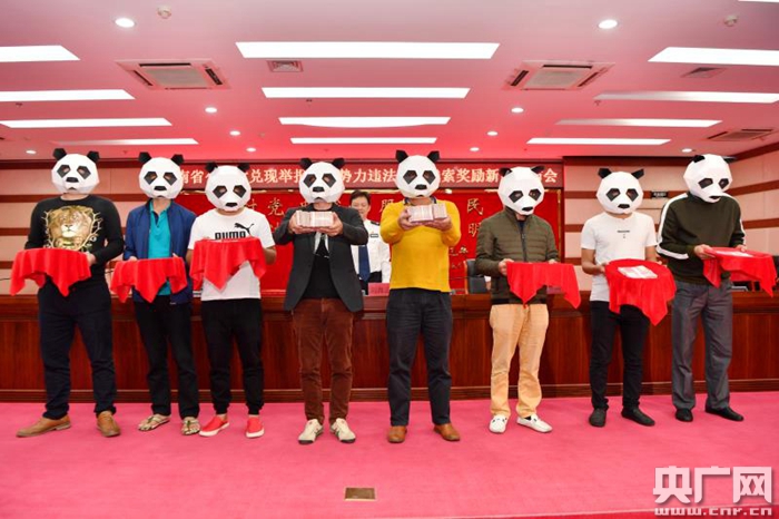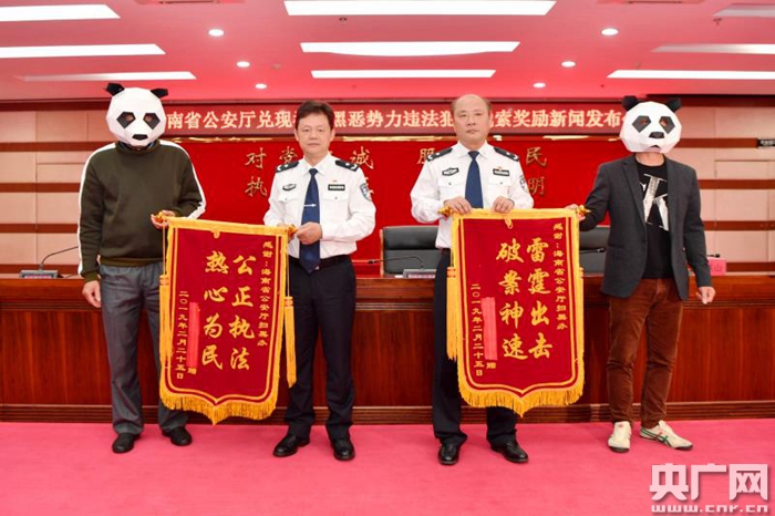 海南省公安廳兌現(xiàn)舉報(bào)黑惡勢(shì)力違法犯罪線索獎(jiǎng)勵(lì)42萬(wàn)元獎(jiǎng)金現(xiàn)場(chǎng)發(fā)放(央廣網(wǎng)發(fā) 照片由海南省公安廳提供)