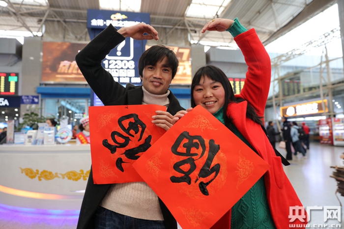 春運(yùn)首日,昆明局集團(tuán)公司在昆明站開展送;顒樱ㄑ霃V網(wǎng)發(fā) 楊航 攝)