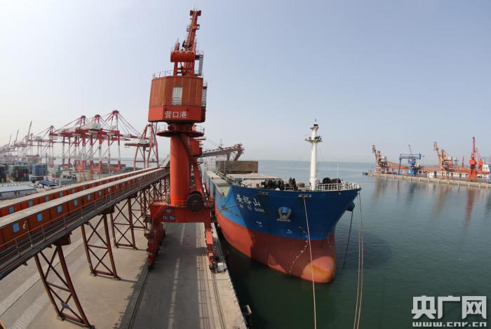 遼寧港口集團開通成立后首條糧食班輪航線(央廣網(wǎng)發(fā) 寧勇 攝)
