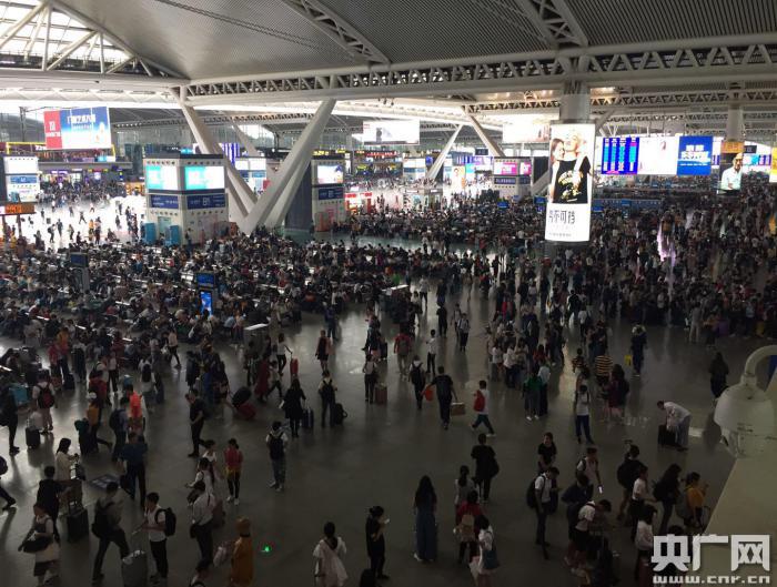 廣州南站發(fā)送旅客量創(chuàng)下了建站以來歷史新高。(央廣網(wǎng)發(fā) 廣州交通運輸部門供圖)