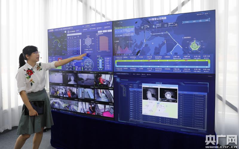 純電動(dòng)5G公交。(央廣網(wǎng)發(fā) 李劍鋒攝)