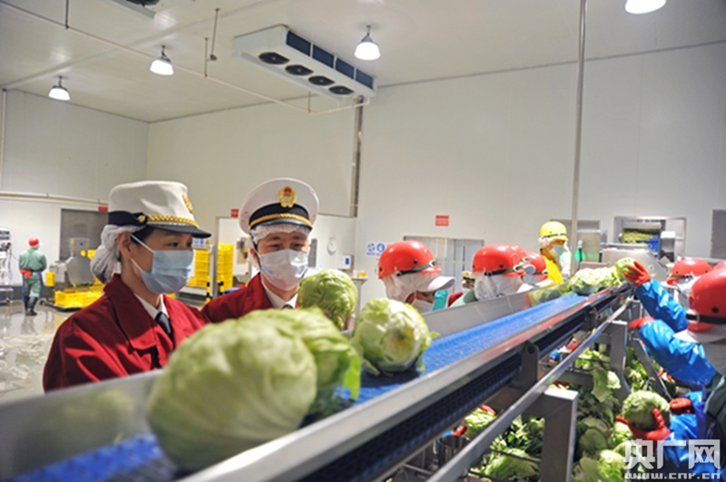 穗東海關(guān)關(guān)員察看出口蔬菜。(央廣網(wǎng)發(fā) 陳志軍攝)