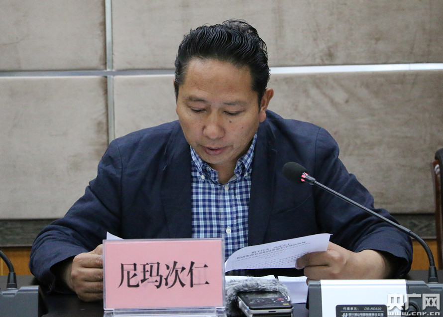 區(qū)體育局局長(zhǎng)尼瑪次仁正在會(huì)上發(fā)言