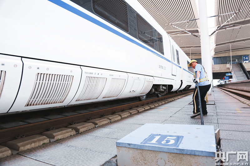 據(jù)丙班上水隊隊長楊勇志介紹,與傳統(tǒng)列車不同,高鐵列車運行密度大、站停時間短,上水工作通常只能在5分鐘左右的時間內(nèi)完成,而每趟列車至少需要為4個車廂補給用水,暑運期間上水量增加,一趟車經(jīng)常需要補水6-8節(jié)車廂,這就導(dǎo)致工作時間緊張,“基本上是與時間賽跑”。