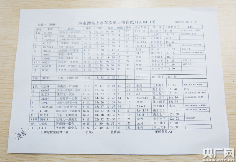 除了圖定的上水車次,最讓給水隊緊張的是那些應(yīng)急上水的車次。濟南西站后服車間給水值班員王笑癡告訴記者,當列車晚點或者車上用水量大的時候,有時就需要應(yīng)急上水。當然,應(yīng)急上水有一套固定的流程,“遇到應(yīng)急上水的情況,列車長先通知路局的調(diào)度,調(diào)度再通知我們這兒的綜合控制室,然后再通知到我們!睉(yīng)急上水的時間一般有20分鐘左右,看似時間充足,其實可能比圖定上水還要緊張,“出現(xiàn)應(yīng)急上水情況的時候,其他隊基本都在負責(zé)自己的圖定的上水工作,在這20分鐘之內(nèi),我需要組織盯控人員,包括我自己,如果人員還不夠的話,還可以從車間抽調(diào)領(lǐng)導(dǎo)干部,然后趕到現(xiàn)場完成上水任務(wù),不能耽誤乘客的用水!