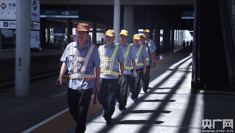 濟南西站作為京滬高鐵沿線4個補水站之一,同時作為京滬高鐵山東段唯一一個補水站,承擔(dān)著為京滬高鐵上南來北往的旅客供水的任務(wù)。濟南西站后服車間“泉潤高鐵”給水隊,平均年齡超過50歲,隊員共分三班,每班共有15人,日常被分為兩隊作業(yè)。暑運期間,臨時增加了5人的上水組。