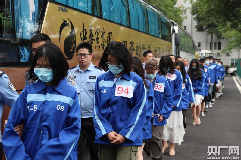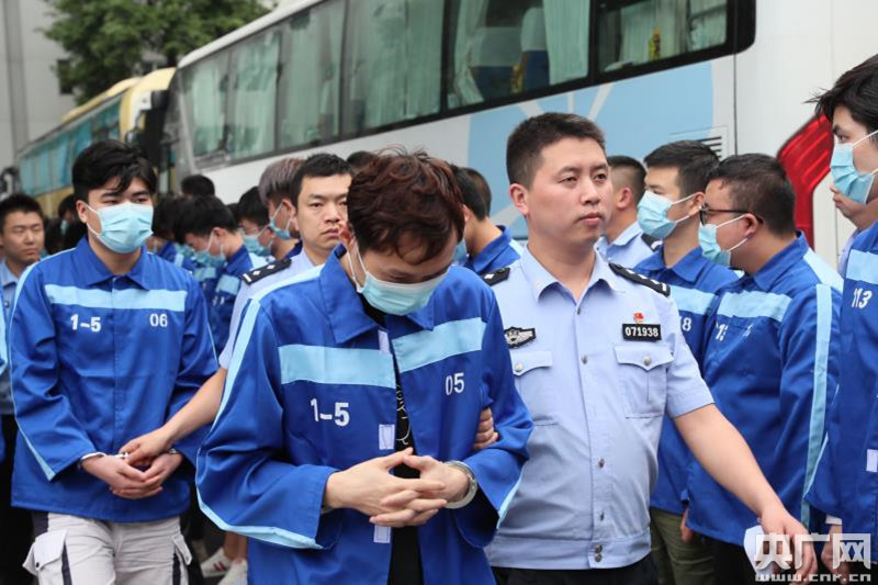 6月15日下午,127名犯罪嫌疑人在民警的押解下,經(jīng)過24小時(shí)的長(zhǎng)途跋涉,被押解回蓉。