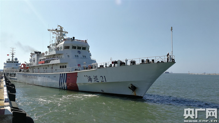 海南海事“海巡21”輪?趩⒊萄埠胶D蠉u東部及西沙水域(央廣網(wǎng)發(fā) 照片由海南海事局提供)