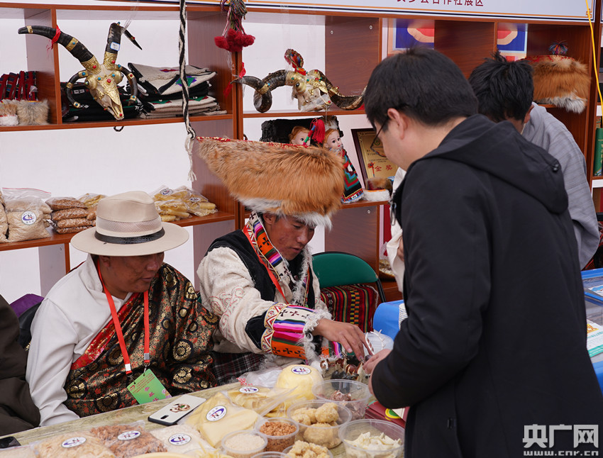 來自那曲的商戶正在銷售產(chǎn)品(央廣網(wǎng)記者 普布次仁 攝)