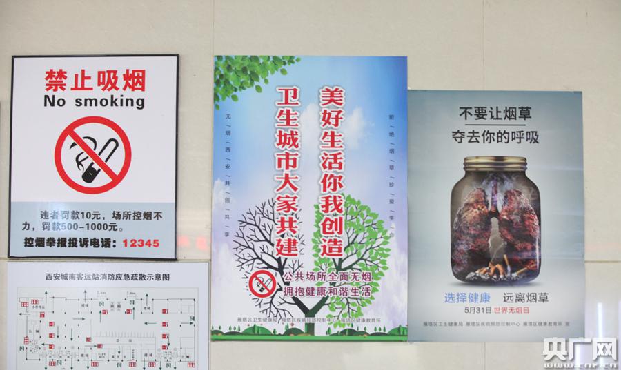 記者在西安城南客運站看到,該車站站內及站前廣場貼滿了禁煙標識,廣播循環(huán)播放禁煙規(guī)定,仍有乘客在候車區(qū)抽煙,也不見工作人員勸導、制止。當值保安看到記者拍攝采訪后,才上前制止勸離吸煙者。